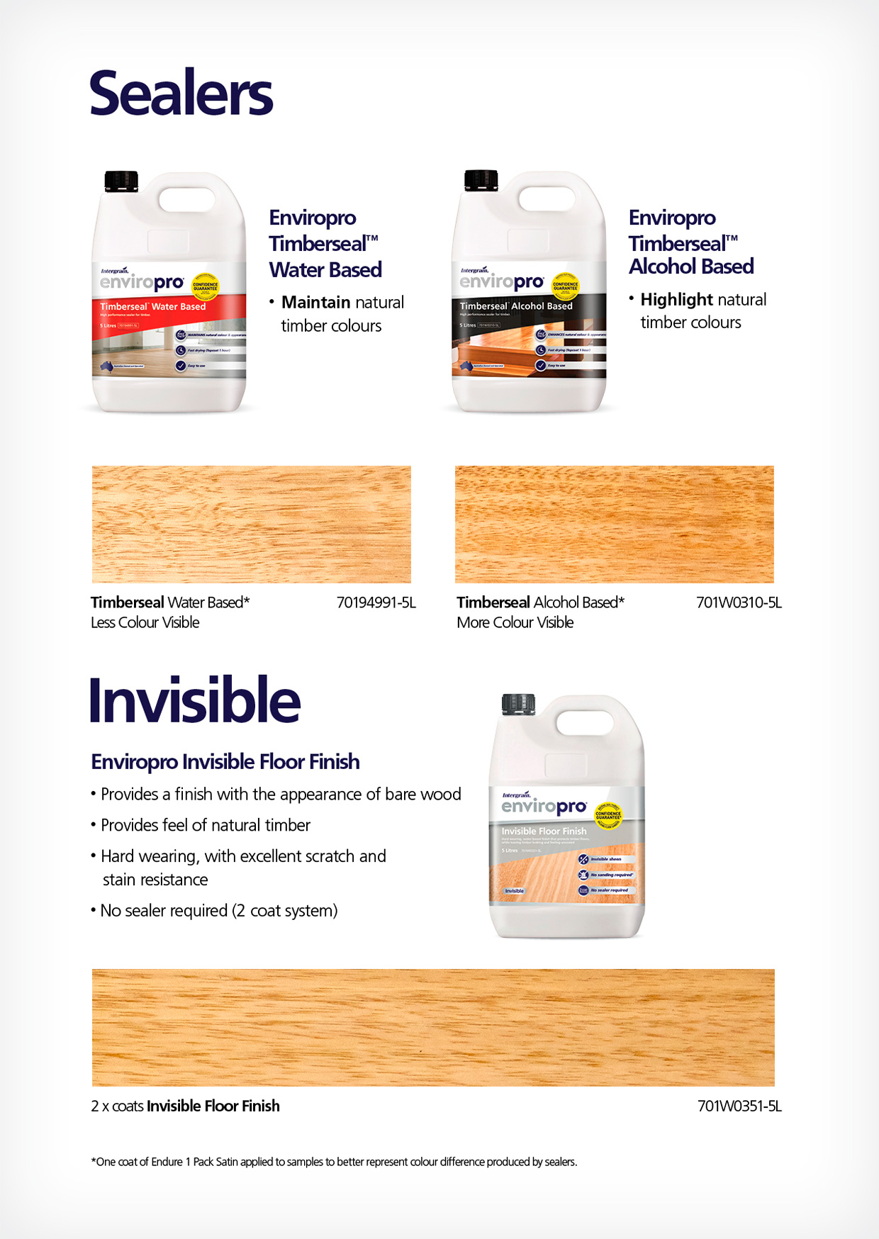 - 1 x Timberseal Water Based with 2 x Endure Gloss
